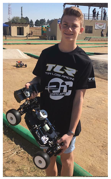 Jarod is 13 years old, started racing from the age of 9 he has won the SA National Championship in 2WD Short Course Trucks in 2014. Jarod started racing 1/8th Nitro Buggy's in 2015 and has finished 7th in the A Main at the APN National in 2016