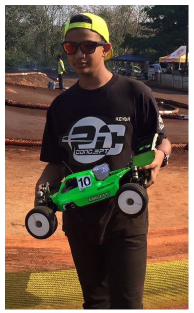 Keyur is 14 years old, he has been racing from the age of 5, He won his 1st place trophy at a national at the age of 6 in the Buggy C Mains.